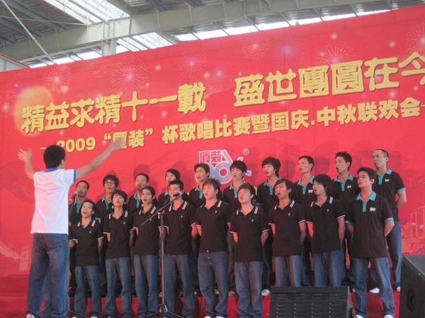 9月29日下午,2009年度“廈裝杯”歌唱比賽在廈裝公司總裝車間舉行。此次歌唱比賽以“精益求精十一載、盛世團(tuán)圓在今朝”為主題,賀祖國(guó)60周年華誕、喜迎中秋、慶祝廈裝成立11周年。公司及各部門從6月份開始籌備此次比賽,此次比賽分為集體組和個(gè)人組,集體組(合唱)以部門為單位,最終有6支隊(duì)進(jìn)入當(dāng)天的決賽,個(gè)人組通過先前的部門推薦及預(yù)賽選拔,最終有11人闖入決賽。